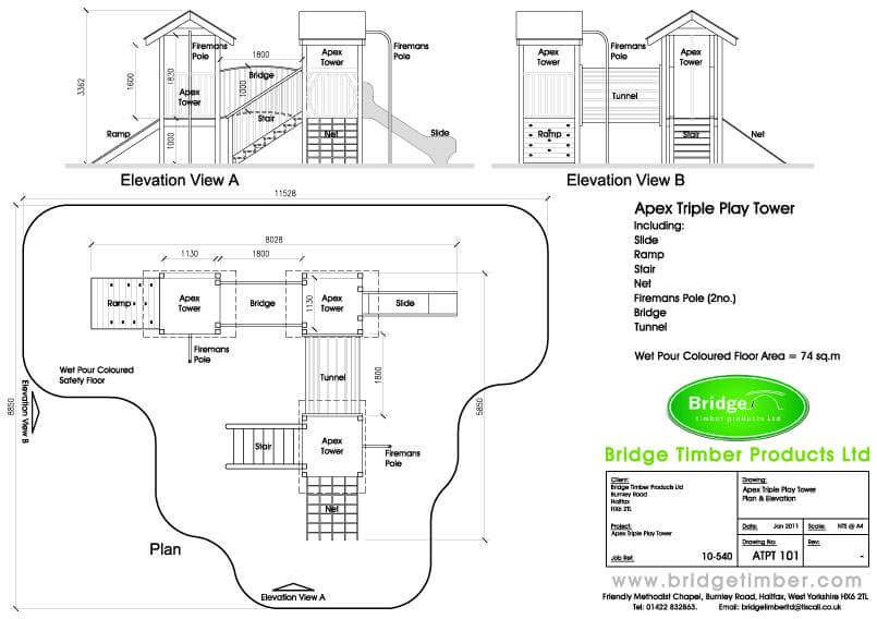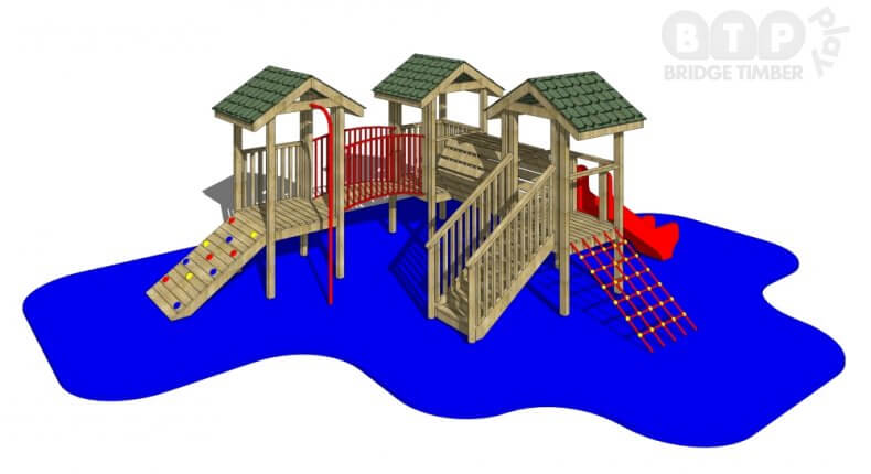 Our impressive Triple Apex Play Tower comprises of three apex towers, connected by bridges and tunnels.